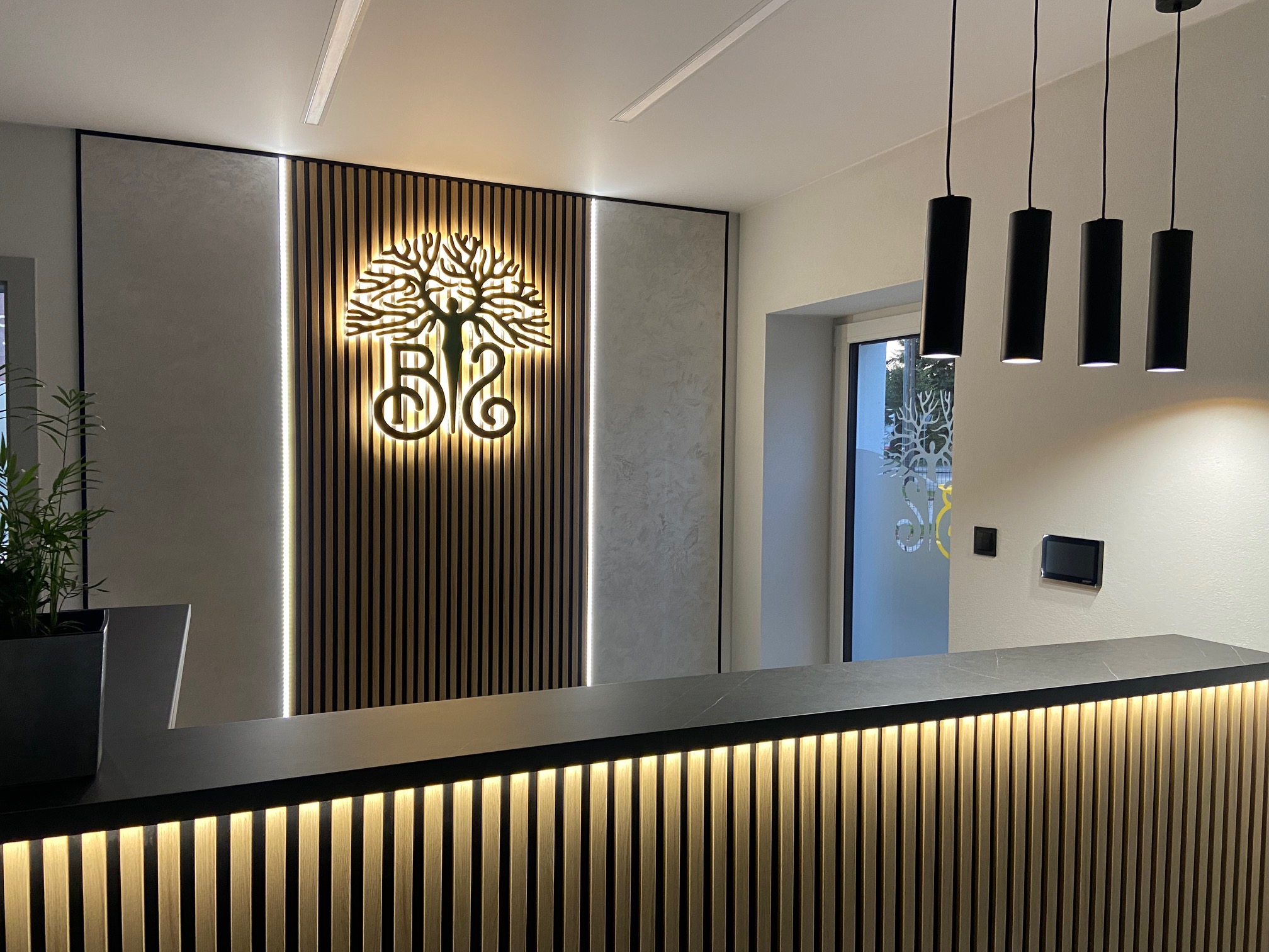 Podświetlane logo sprawia, że firma wygląda nowocześnie i wiarygodnie.